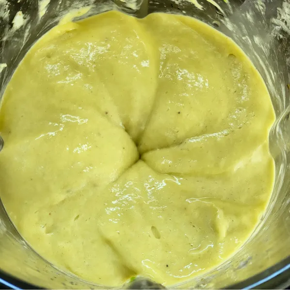 - Xay nhuyễn đến khi hỗn hợp sánh mịn. Nếu đặc quá, thêm chút nước từ từ.