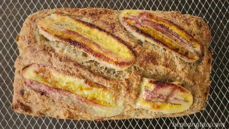 - Thêm chuối cắt lát lên bề mặt.