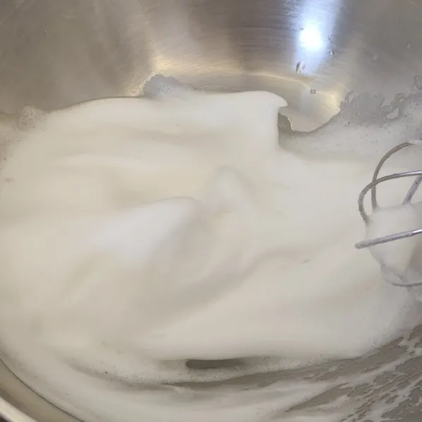 - Đánh lòng trắng trứng 1-2 phút đến khi hơi bông, có bọt nhẹ
