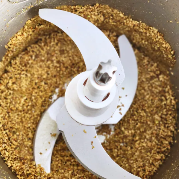 - Xay yến mạch và pistachio trước, sau đó thêm chà là