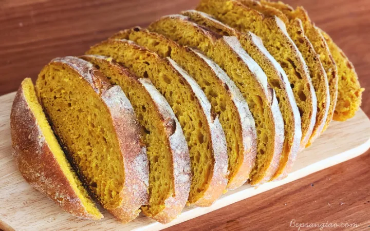 Bánh mì bí đỏ sourdough là phiên bản biến tấu mềm ẩm và giàu dinh dưỡng từ chiếc sourdough truyền thống. Bí đỏ khi được hấp chín và nghiền mịn mang đến độ ẩm tự nhiên, màu vàng cam rực rỡ, cùng hương thơm nhẹ nhàng rất cuốn. Khi kết hợp với men tự nhiên sourdough, chiếc bánh trở nên dai – mềm – thơm – để lâu không khô, cực kỳ phù hợp cho bữa sáng hoặc bữa phụ lành mạnh.