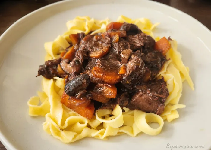 Nếu bạn đã thử làm bánh mì baguette sourdough, đây chính là món ăn hoàn hảo để kết hợp: vỏ bánh giòn thấm nước sốt vang đỏ béo thơm — một bữa tối kiểu Pháp ấm cúng ngay tại nhà.