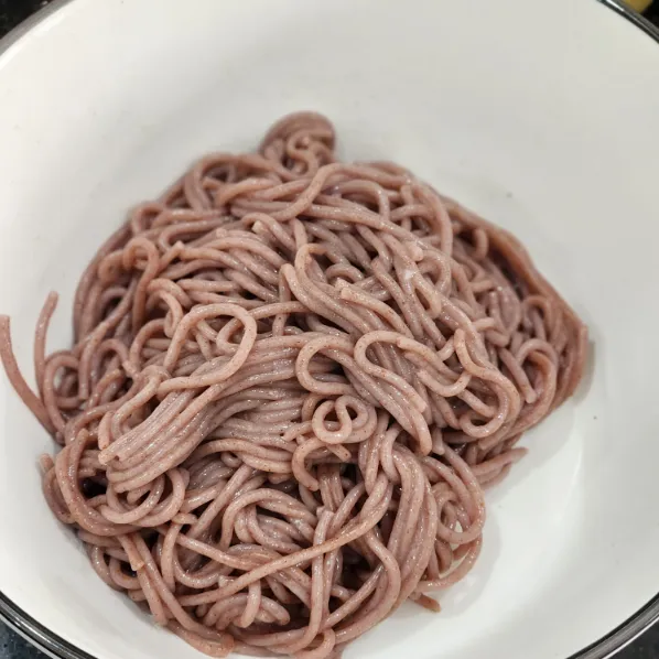 Luộc bún gạo lứt đến khi mềm, vớt ra để ráo.