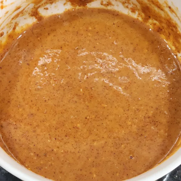1 muỗng bơ đậu phộng + 1 thìa canh nước mắm + tương ớt lên men + ớt tươi + tỏi băm + 1 ít mật ong + nước ấm → khuấy đều đến khi sánh mịn.