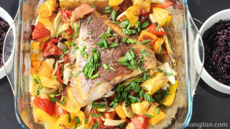 Cá nướng rau củ và thơm là một món ăn vừa ngon mắt, vừa cân bằng dinh dưỡng, mang hơi thở hiện đại nhưng vẫn rất gần gũi với bữa cơm Việt. Thay vì chiên ngập dầu, cá được nướng cùng ớt chuông, hành tây và thơm (dứa), giữ trọn vị ngọt tự nhiên và bổ sung thêm vitamin từ rau quả. Ăn kèm cơm gạo lứt dẻo bùi, món ăn này trở thành lựa chọn lý tưởng cho một bữa chính healthy, đủ chất mà không lo ngán.