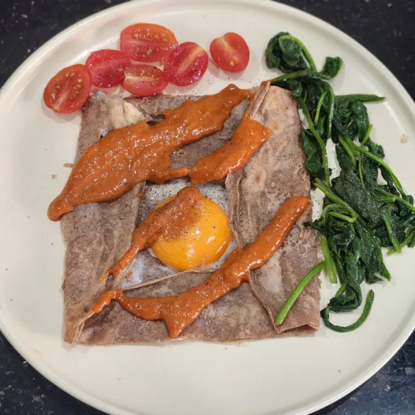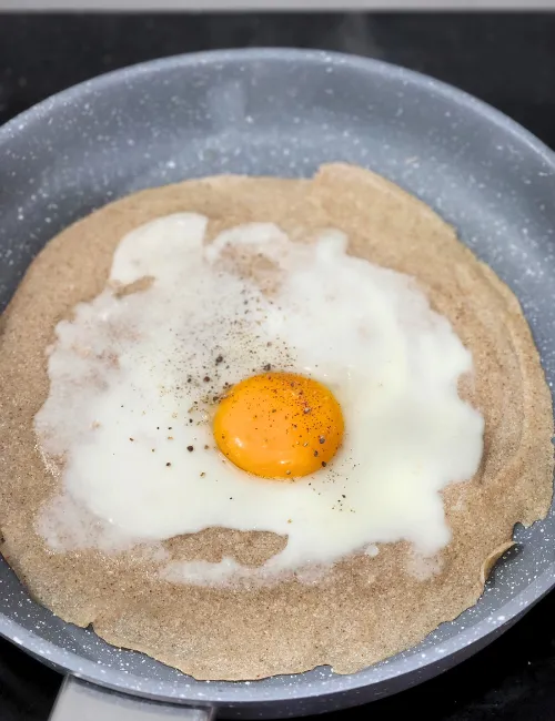 Bánh crepe kiều mạch trứng là món ăn sáng đơn giản mà thanh nhã, phổ biến ở vùng Brittany – Pháp. Lớp bánh mỏng nhẹ từ bột kiều mạch (không chứa gluten), kết hợp với trứng gà, rau xanh hoặc phô mai tạo nên hương vị vừa mộc mạc vừa bổ dưỡng.