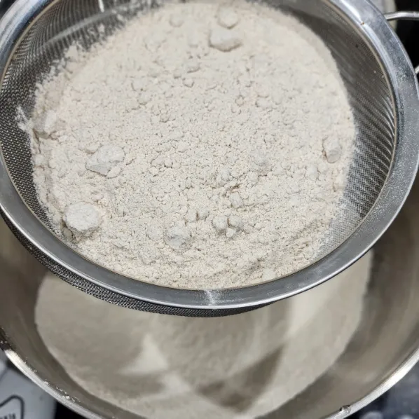 - Trộn bột kiều mạch với muối và nước trong tô, khuấy đều đến khi hòa quyện.