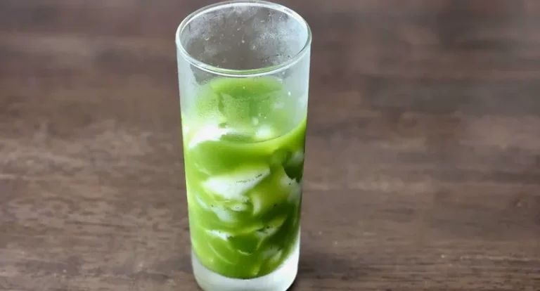 - Cuối cùng, rót từ từ hỗn hợp matcha lên trên, để tạo lớp màu xanh nổi đẹp mắt.
