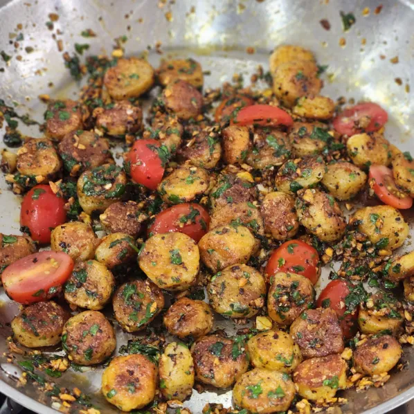 - Không đảo quá nhiều khi áp chảo: Để gnocchi tạo mặt vàng caramel đẹp.