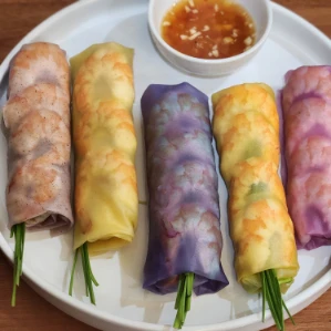 - Bánh tráng gạo lứt ngũ sắc: từ gạo lứt kết hợp với các loại củ quả tạo màu (như lá dứa, nghệ, củ dền…), không chỉ đẹp mắt mà còn giàu dinh dưỡng hơn bánh tráng thông thường.