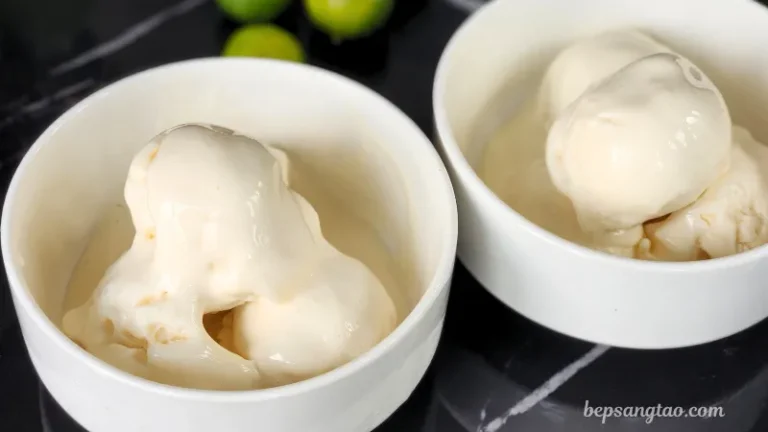 Có thể ăn ngay kiểu “soft serve”, hoặc cho vào hộp kín, để ngăn đá thêm 1–2 giờ cho kem cứng hơn.