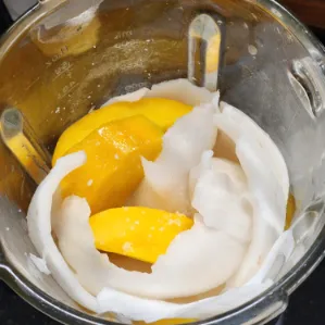 Cho xoài, nước cốt dừa, mật ong, và một ít muối vào máy xay.