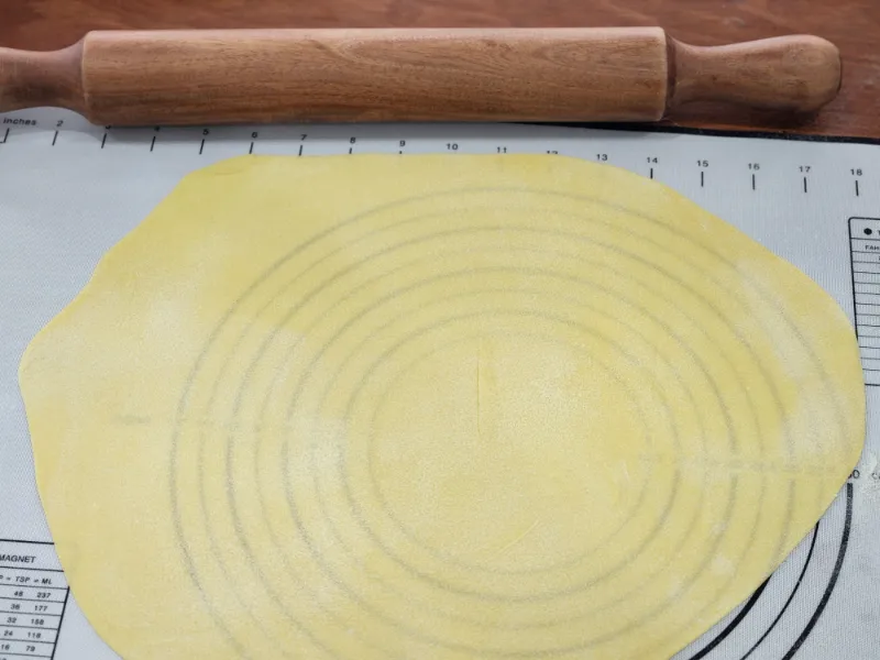 - Phủ nhẹ bột semolina lên mặt bàn và cây cán (hoặc máy cán mì).