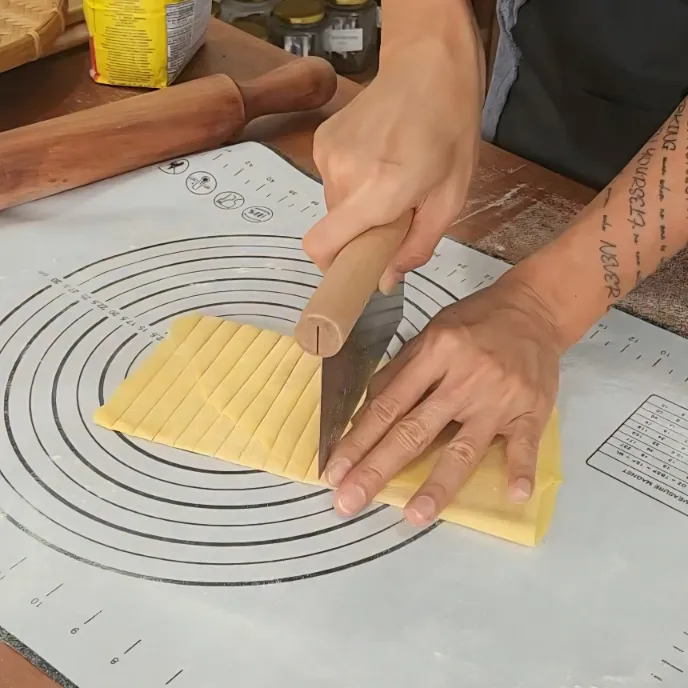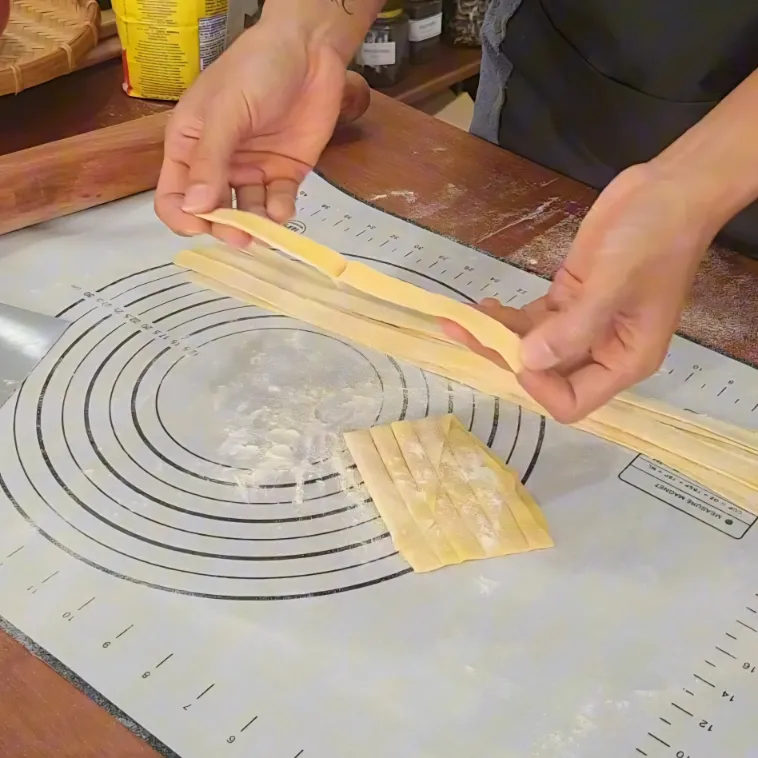 - Dùng dao hoặc máy cắt để tạo sợi mì fettuccine, tagliatelle,…