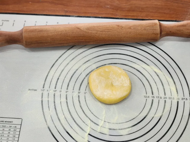 - Cán từng phần nhỏ: chia bột thành 4 phần không chỉ dễ thao tác mà còn giúp kiểm soát độ mỏng đều hơn.