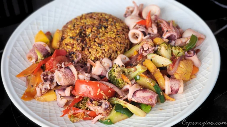 Mực xào thập cẩm là món ăn kết hợp giữa hải sản tươi ngon và rau củ nhiều màu sắc, vừa thanh mát vừa giàu dưỡng chất. Điểm đặc biệt của món ăn này là sự hòa quyện giữa vị ngọt tự nhiên của mực, hương thơm nồng ấm của tỏi, gừng, ớt, cùng độ giòn tươi của rau củ như dưa leo, ớt chuông, cà chua, thơm và hành tây