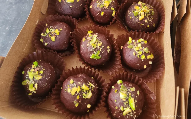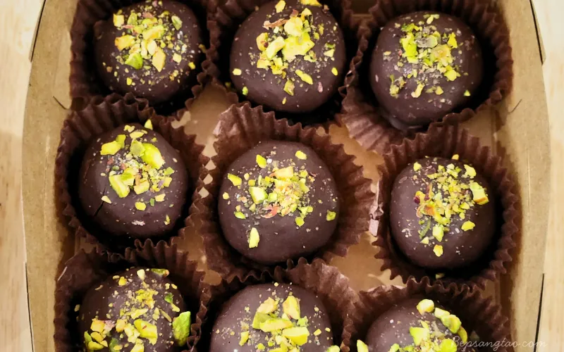 Những viên chocolate nhỏ xinh nhưng đầy dinh dưỡng, kết hợp giữa vị ngọt tự nhiên của chà là, độ béo mịn của bơ hạt dẻ cười và lớp chocolate đen nguyên chất phủ bên ngoài. Đây là món ăn vặt “healthy” dễ nghiện – không cần đường tinh luyện nhưng vẫn đủ chiều sâu hương vị.