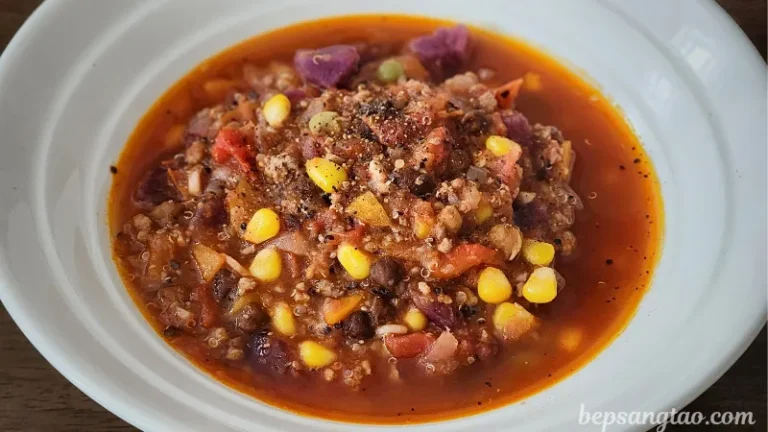 Quinoa chili là phiên bản chay của món chili con carne nổi tiếng của ẩm thực Mexico – được biến tấu với hạt diêm mạch (quinoa), đậu các loại, cà chua và gia vị đặc trưng. Món ăn này vừa ấm bụng, giàu protein thực vật, vừa thanh nhẹ và dễ tiêu. Phù hợp cho bữa trưa, tối hoặc những ngày se lạnh.