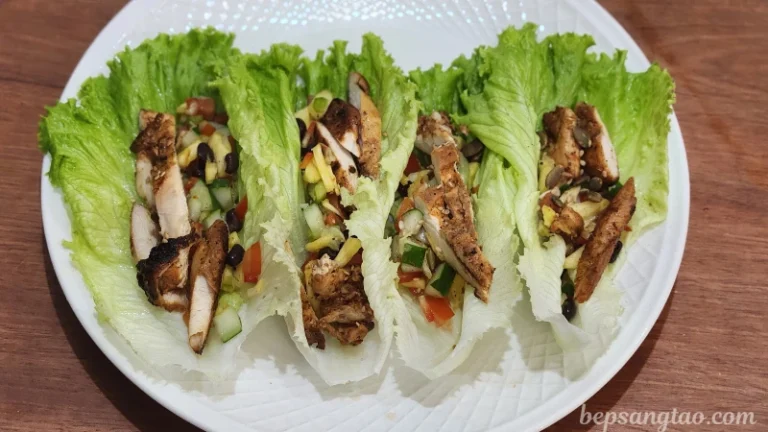 - Nếu chuẩn bị tiệc, bạn có thể làm sẵn salsa và gà, đến lúc ăn mới gói salad để giữ lá giòn.