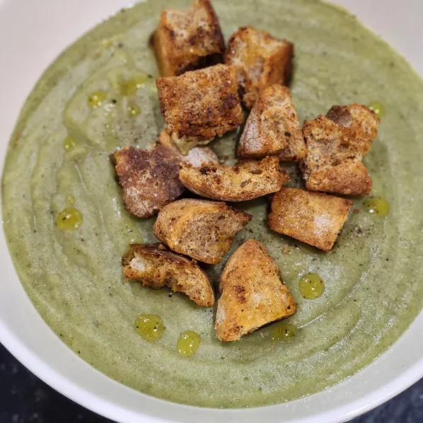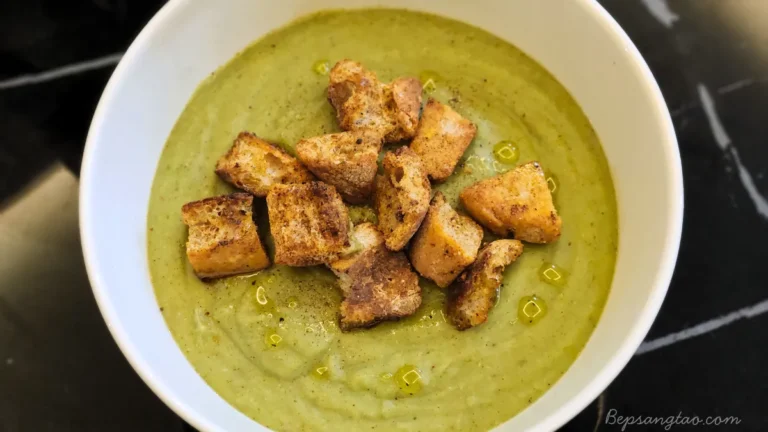 Đối với những ngày bạn muốn một bữa tối ấm áp, nhẹ bụng nhưng vẫn đủ chất, soup bông cải xanh khoai tây là lựa chọn hoàn hảo. Món soup này được mình biến tấu thêm đậu tây trắng và hạt điều để tăng độ béo tự nhiên, giàu protein thực vật và tạo kết cấu mịn mượt mà không cần kem tươi.