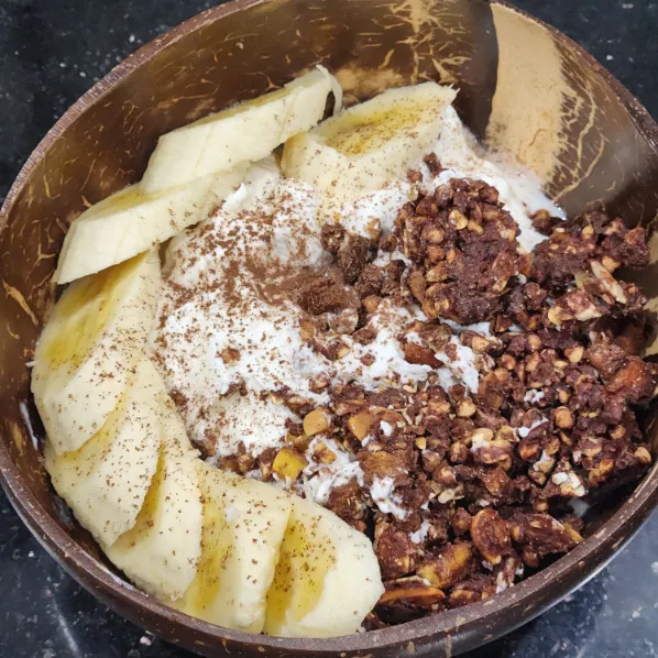 4. Thêm chút mật ong, cacao nibs hoặc hạt tùy thích.