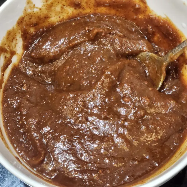 Xay đến khi hỗn hợp mịn, dẻo sệt. (Nếu đặc, có thể thêm 1–2 thìa nước ấm.)