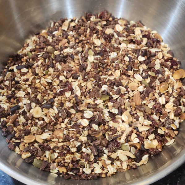 - Rang kiều mạch và yến mạch kỹ giúp granola bar giòn và thơm hơn.
