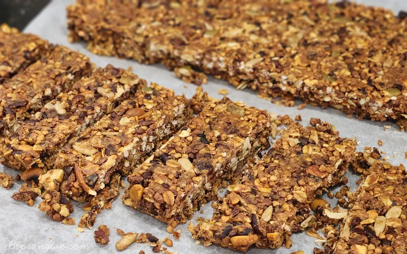 - Rang kiều mạch và yến mạch kỹ giúp granola bar giòn và thơm hơn.