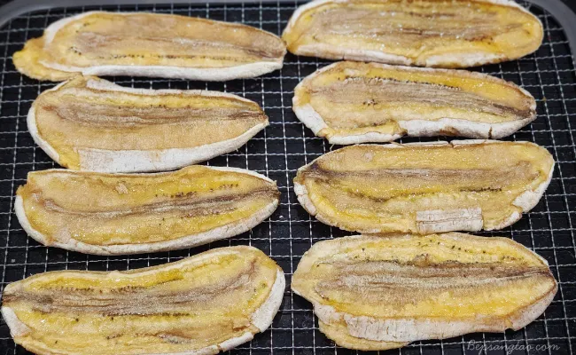 Chuối sấy dẻo giữ được vị ngọt tự nhiên, dễ mang theo làm món ăn vặt lành mạnh hoặc cắt nhỏ trộn vào granola bar vị chuối.