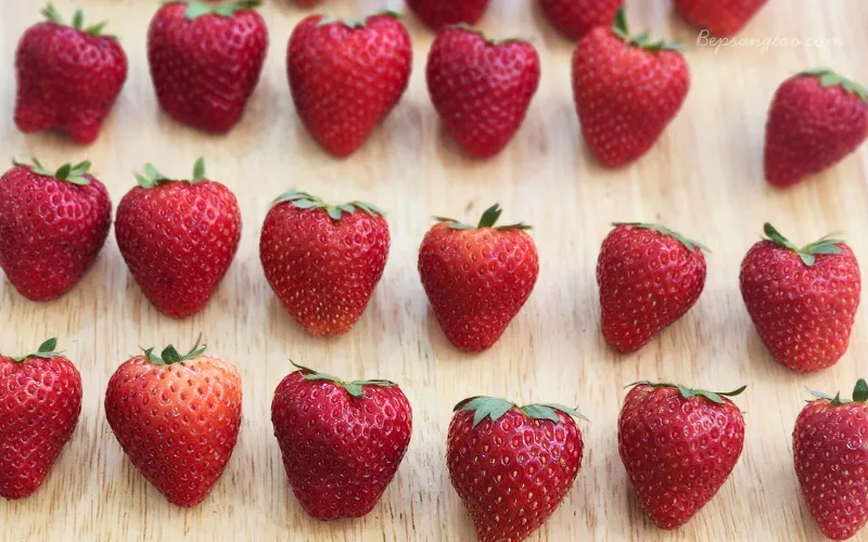 - Chọn dâu tây tươi, màu đỏ sâm, không bị dập hay mốc.